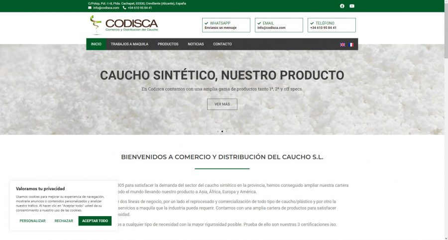 Diseño y maquetación de web corporativa Codisca en WordPress y con Elementor. Ajustes CSS adicionales para completar todo el multidispositivo. Multi idioma.