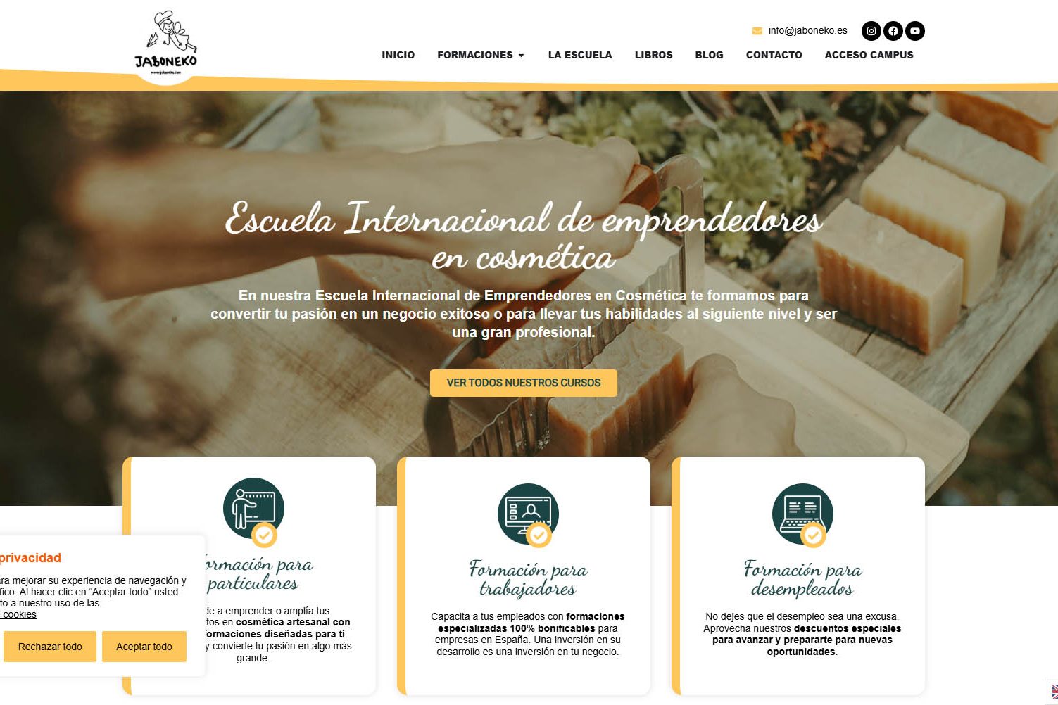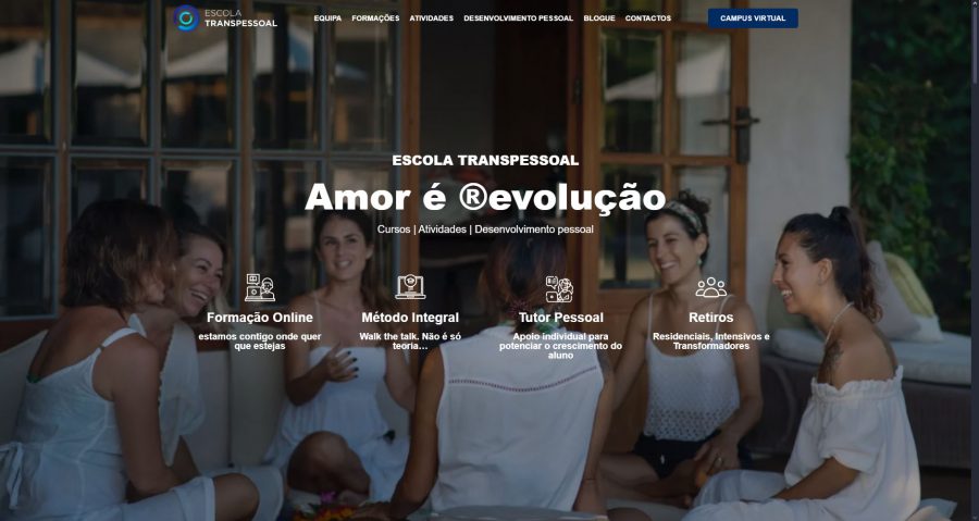 Diseño y maquetación de web corporativa Escola Transpessoal para empresa portuguesa de cursos de superación personal con WordPress y Elementor a medida y desde cero. Custom Post Types y ACF. Ajustes CSS adicionales para completar todo el multidispositivo.